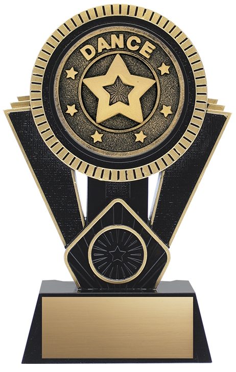 Honor the dedication, skill, and artistry of your dancers with the Apex Dance Black/Gold Trophy, a striking award that blends contemporary style with lasting prestige. Its bold triangular silhouette showcases a large central emblem featuring the word DANCE framed by a starburst design and five surrounding stars—symbolizing achievement, talent, and passion in the performing arts.