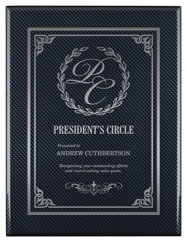 Bold, sleek, and unmistakably contemporary, the Carbon Fiber Laser Engraved plaque is designed for top-tier recognition programs where the details matter. Featuring a striking carbon-fiber pattern finish and precision laser engraving directly onto the surface, this award delivers a clean, integrated look—no added plate required—making the design feel seamless, modern, and premium.