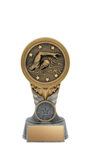 Celebrate swimming excellence with the Ikon Swimming Award, a stunning resin trophy crafted in antique silver and gold tones. Featuring a detailed swimmer in action surrounded by stars, this award captures the power, dedication, and competitive spirit of the sport. Perfect for swim meets, school competitions, club championships, and end-of-season awards, this elegant trophy stands as a lasting symbol of achievement and recognition. Its sleek design with a modern flair ensures it will be proudly displayed by any recipient.