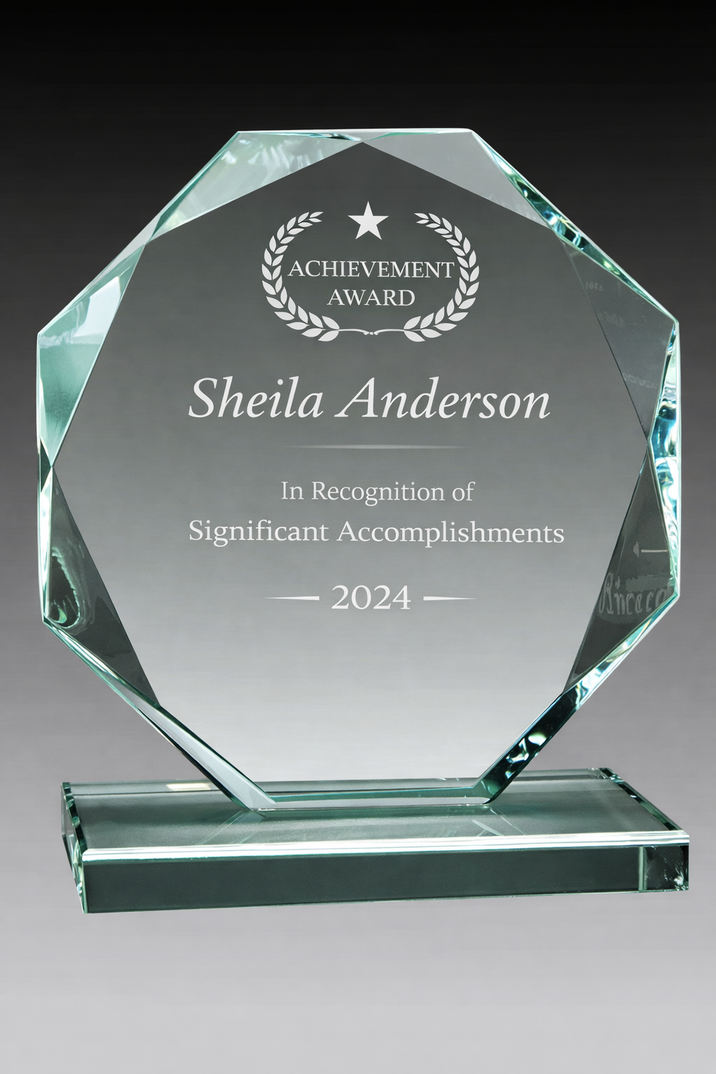 π© Premium Jade Glass Construction β Made from durable and high-quality jade glass, this award has a unique green tint that adds refinement and class.