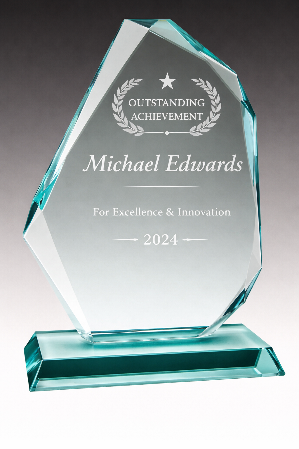 β³ Timeless Elegance β Its modern design and clean lines ensure that the Jade Glass Iceberg Award will remain a stylish and enduring piece in any office or display.