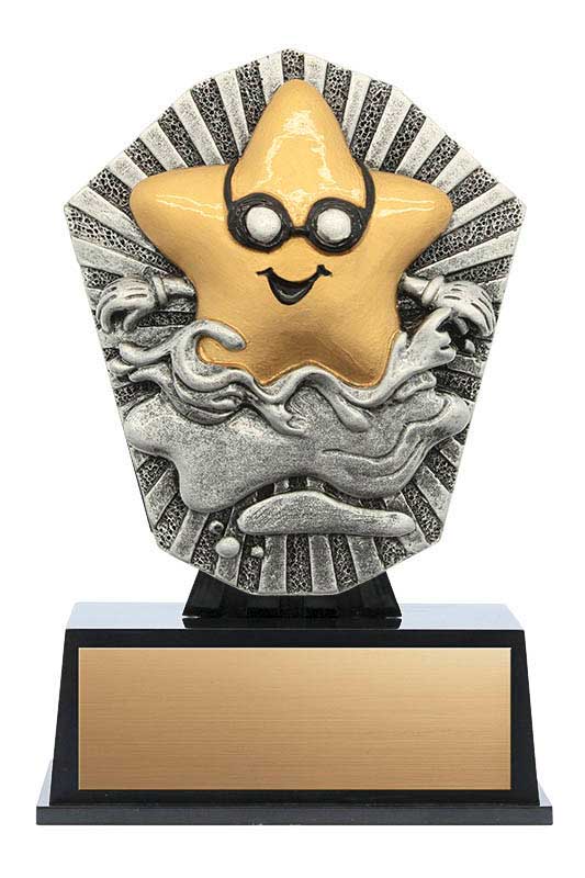 Celebrate the achievements of your youngest swimming stars with the Little Star Swimming Trophy – 4.75″. This charming award features a cheerful golden star character wearing goggles, swimming through stylized silver waves. Perfectly sized for youth swim meets, school competitions, or club events, this fun and inspiring design motivates kids to reach for the stars in the pool. Crafted from durable resin, it combines whimsical appeal with long-lasting quality. Recognize effort, improvement, and team spirit with a trophy that every swimmer will treasure.