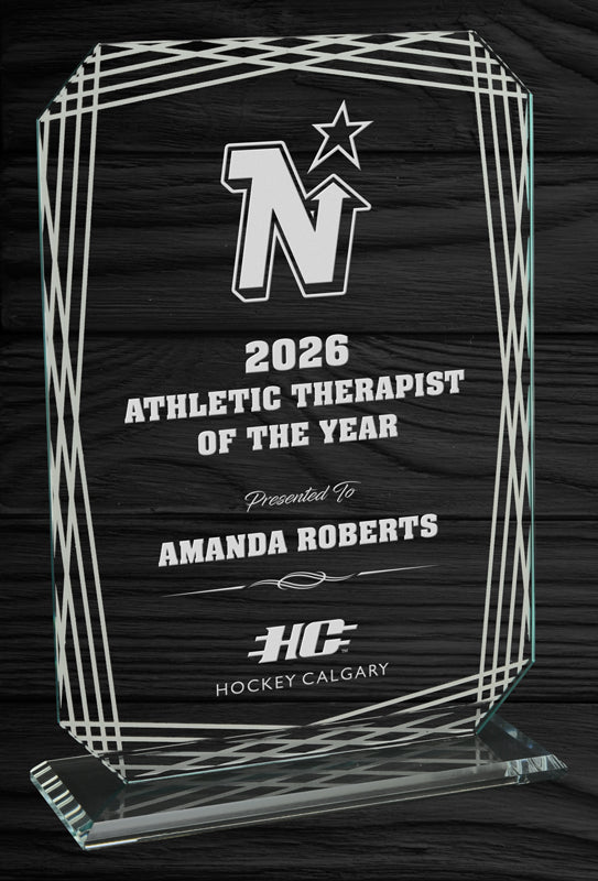 Perfect for corporate recognition, sports awards, employee appreciation, leadership honors, and milestone celebrations, the generous center area provides a clean canvas for logos, award titles, recipient names, and dates. Finished with a beveled glass base for stability and a premium gallery-style presence, the SHIMMER award is a timeless choice for any ceremony.